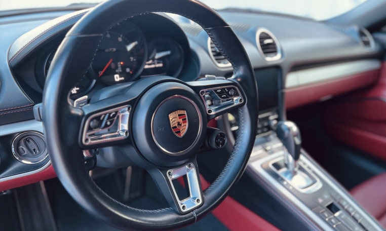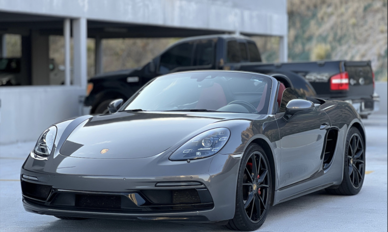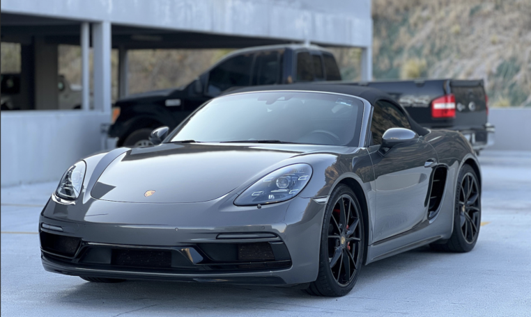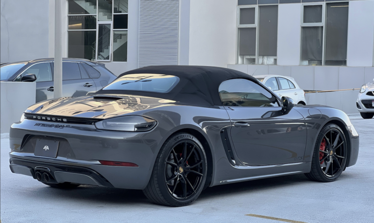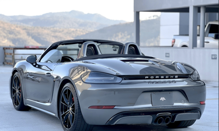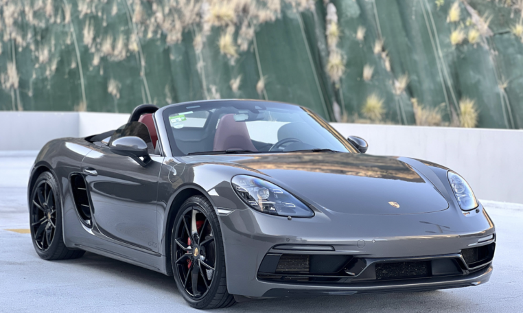 Porsche 718 Boxster GTS, 2019 Transmisión PDK 7 Vel Motor 2.5 lts 365 hp Color Gris Agata Metalizado Interior en piel Rojo Bordeos